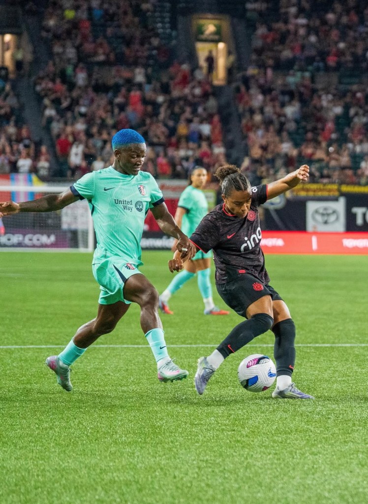 All three Canadians saw action for their clubs in Kansas City Current’s 2-0 win over the Portland Thorns. Nichelle Prince played 62 minutes for the Current, and for the Thorns, Jessie Fleming played 58 minutes, subbing off for Mimi Alidou.
